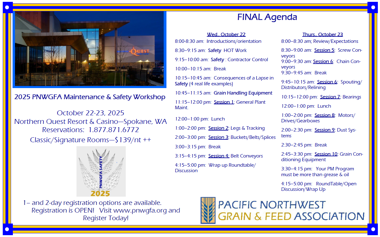 SPECIAL MEMBER EVENT: April 7-9, 2025 - PNWGFA/WMC Wheat Quality Workshop recently concluded (note: this event will not be held next year). AGENDA