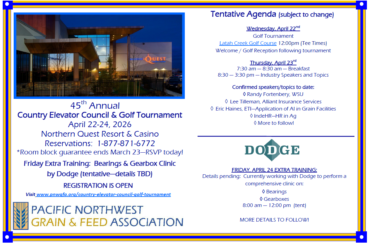 Be sure to refer to Pacific Northwest Grain & Feed (PNWGFA) when you make your reservation!