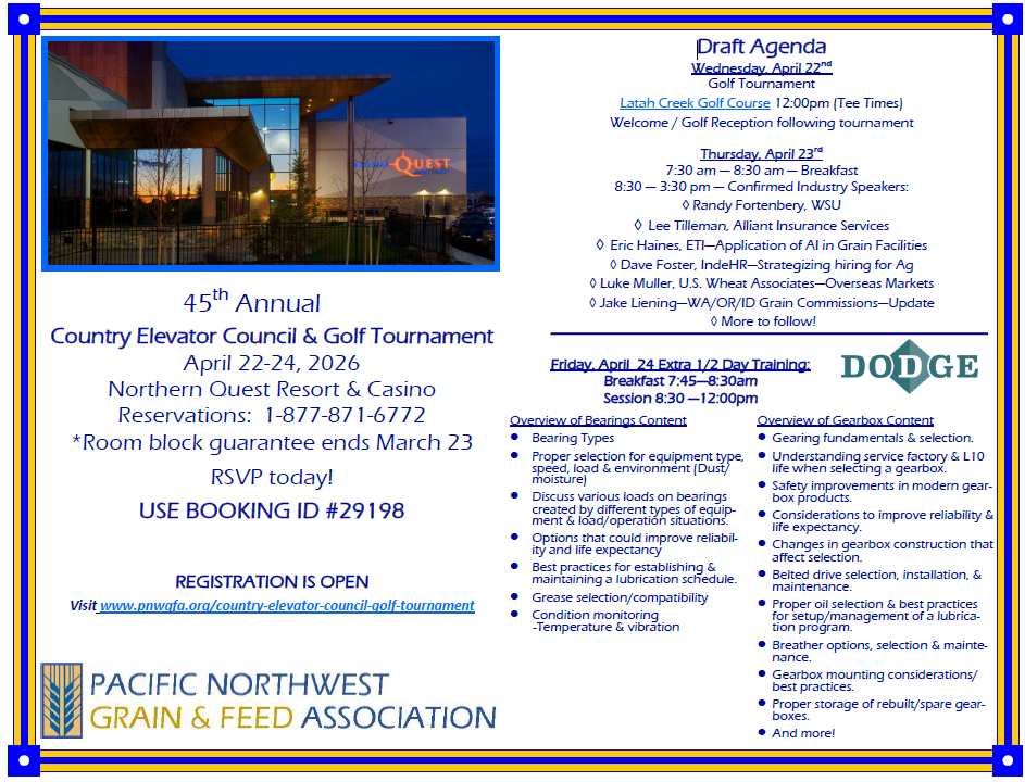 Be sure to refer to Pacific Northwest Grain & Feed (PNWGFA) & Booking ID #29198 when you make your reservation!